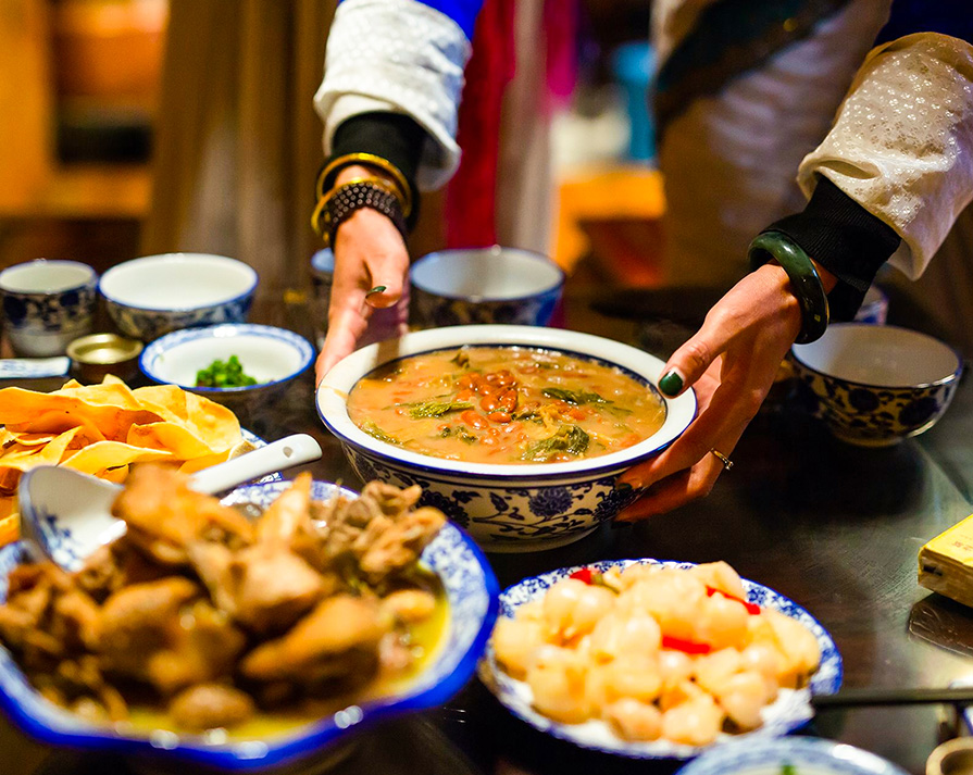 在宫廷,皇上的膳桌上也开始出现汉族菜肴,并且与自己传统的满族菜肴一起成为宫廷御膳。久而久之,就逐渐形成了满汉结合的菜肴“满汉全席”。